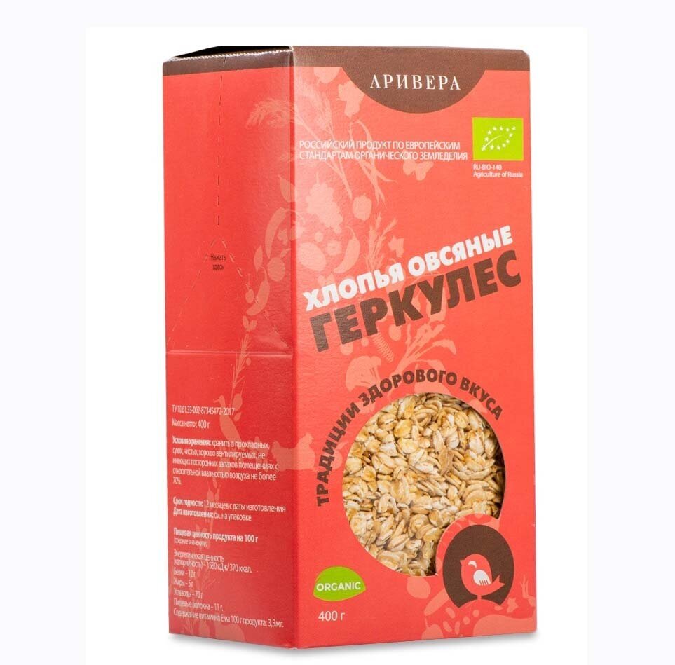 Хлопья «Аривера» овсяные геркулес БИО 400 г ARIVERA