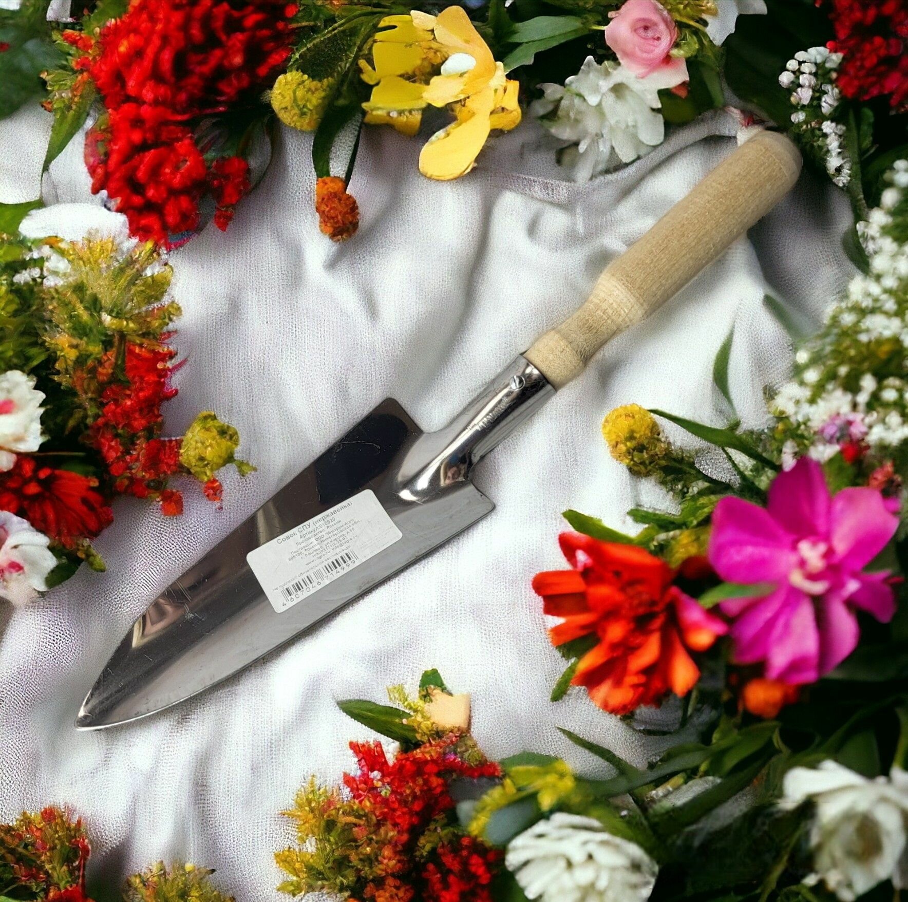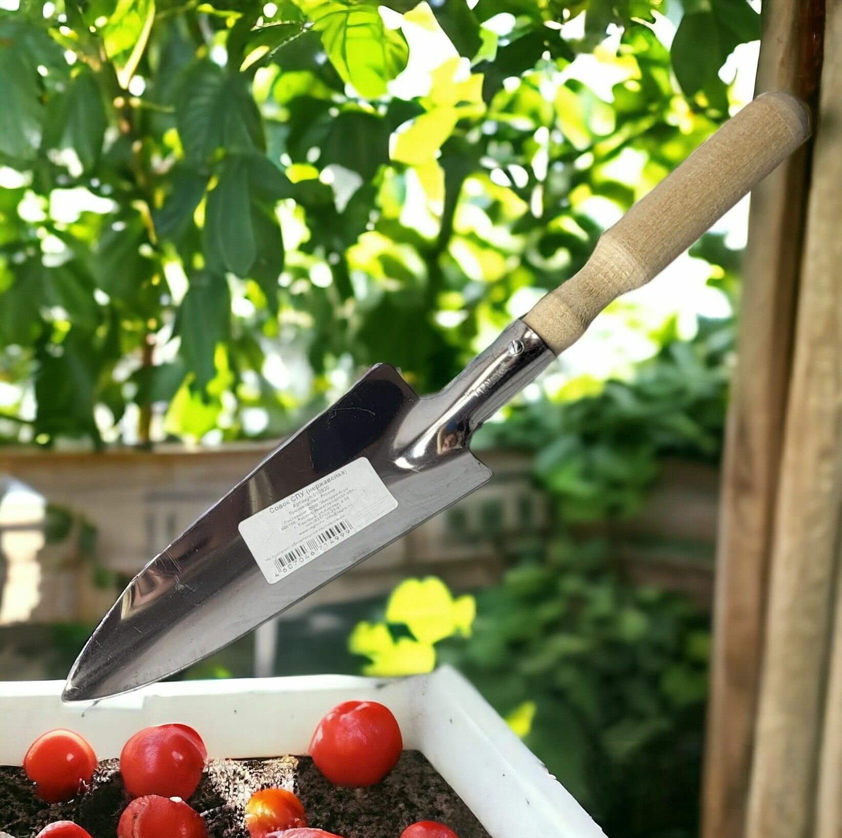Совок посадочный удлиненный. Применяется для более мелких работ таких как уход за клумбами и цветами, декорирование участка.Отличается более удлинненым черенком с зогнутыми краями.