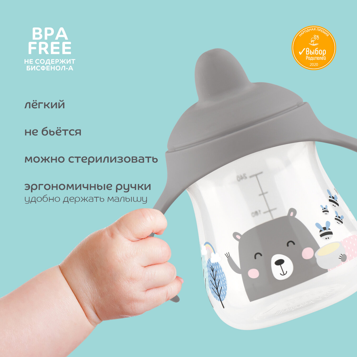 Поильник-непроливайка оснащен твердым носиком. Подходит для детей, у которых уже выросли зубки. Поильник легкий и не бьющийся, имеет эргономичные ручки, которые обучают ребенка правильно держать поильник. Прозрачность поильника и мерная шкала позволяют контролировать количество жидкости, которое ребенок выпивает. Колпачок защищает носик от загрязнения, позволяет брать поильник на прогулку, а открыть его можно одной рукой. Изготовлен из безопасных материалов, не содержащих бисфенол-А. объем 250 мл защитный колпачок для гигиеничного хранения не содержит бисфенол-А (BPA free).