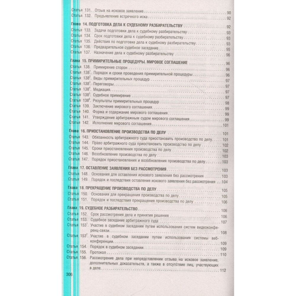 Текст Кодекса сверен с официальным источником и приводится по состоянию на 1 октября 2022 г. с использованием общепринятых сокращений.Представленное вашему вниманию издание учитывает только изменения, внесенные опубликованными в официальных источниках на дату подписания издания в печать федеральными законами.Текст статей приводится на дату, обозначенную на обложке данной книги (дата актуализации). Если есть изменения, вступающие в силу позднее, то вместе с редакцией нормы, действующей на эту дату, приводится норма в новой редакции и указывается дата, с которой она вступает в силу.Издание содержит путеводитель по актуальной судебной практике Верховного Суда РФ, а также действующим постановлениям Пленума Высшего Арбитражного Суда РФ – соответствующие статьи кодекса помечены знаком , после которого приводятся название, реквизиты и пункты необходимого документа.В настоящем издании дополнительно приводится Постановление Пленума Верховного Суда РФ от 23 декабря 2021 г. № 46 «О применении Арбитражного процессуального кодекса Российской Федерации при рассмотрении дел в суде первой инстанции».Изменения:Федеральный закон от 18 июля 2019 г. № 191-ФЗ;Федеральный закон от 26 июля 2019 г. № 197-ФЗ;Федеральный закон от 12 ноября 2019 г. № 374-ФЗ;Федеральный закон от 2 декабря 2019 г. № 406-ФЗ;Федеральный закон от 8 июня 2020 г. № 171-ФЗ$Федеральный закон от 8 декабря 2020 г. № 428-ФЗ;Федеральный закон от 24 февраля 2021 г. № 23-ФЗ;Федеральный закон от 1 июля 2021 г. № 282-ФЗ;Федеральный закон от 21 декабря 2021 г. № 417-ФЗ;Федеральный закон от 30 декабря 2021 г. № 440-ФЗ;Федеральный закон от 30 декабря 2021 г. № 473-ФЗ;Федеральный закон от 11 июня 2022 г. № 177-ФЗ;Федеральный закон от 11 июня 2022 г. № 183-ФЗ;Федеральный закон от 14 июля 2022 г. № 337-ФЗ.