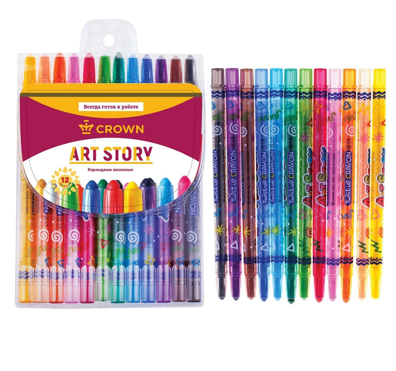 Карандаши восковые ArtStory 12 цветов CROWN Канцелярия