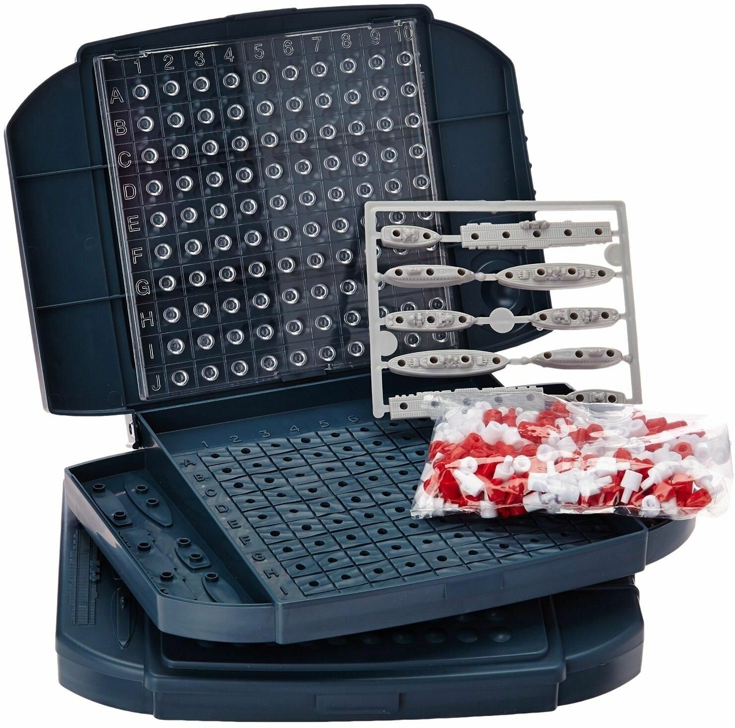 Классическая версия игры, в которой игрокам нужно вести свой флот из 5 кораблей на поиски врага и точно угадывать координаты его кораблей. Цель - потопить флот врага прежде, чем это сделает он. В наборе имеется: 2 игровых доски, 10 кораблей, красные и белые гвоздики.