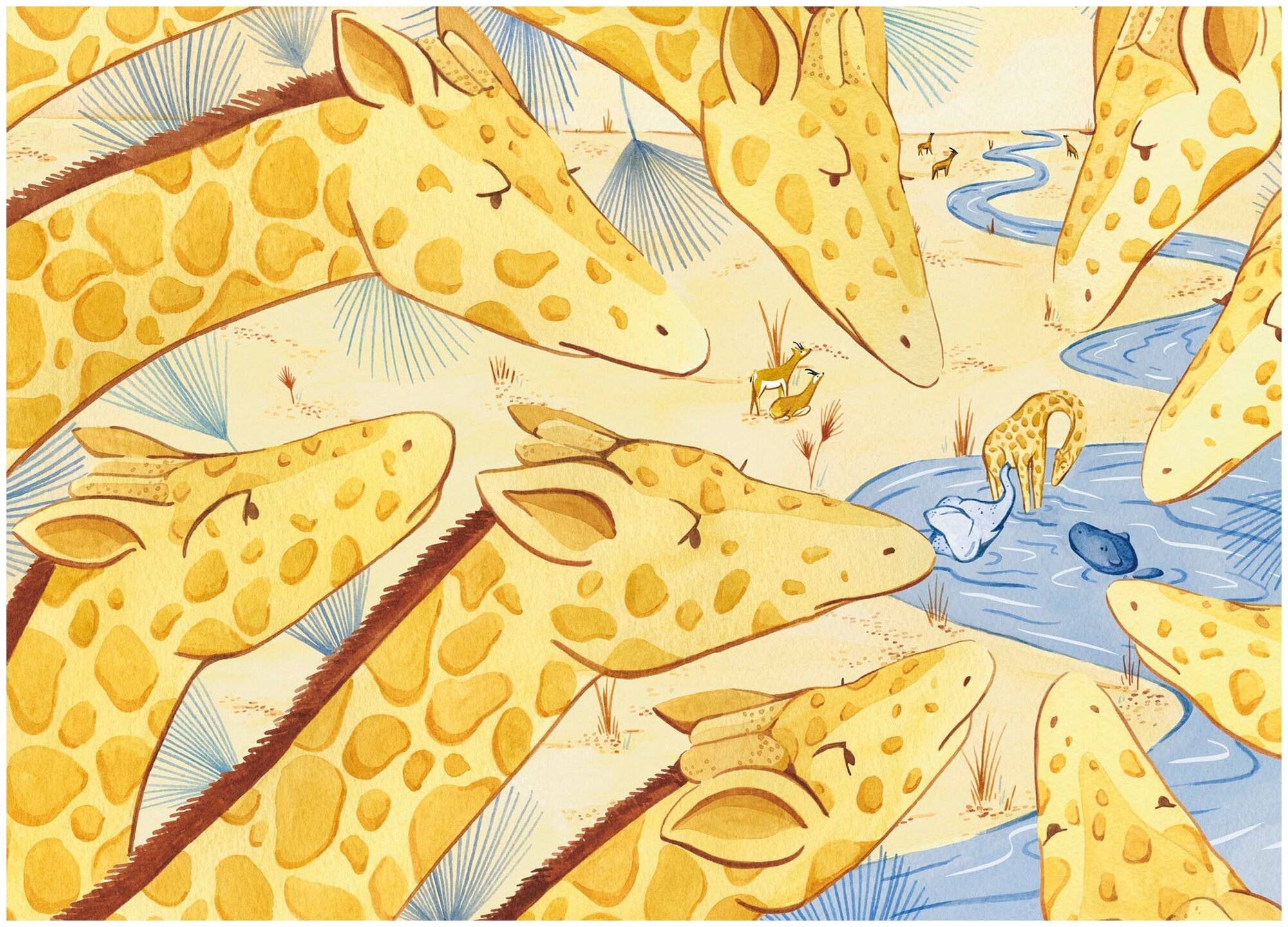 Очень спокойная сдержанная цветовая гамма, с некоторым преобладанием какого-то одного цвета в каждой сказке. При перелистывании ребенок может различать сказки еще и по цветовой композиции.