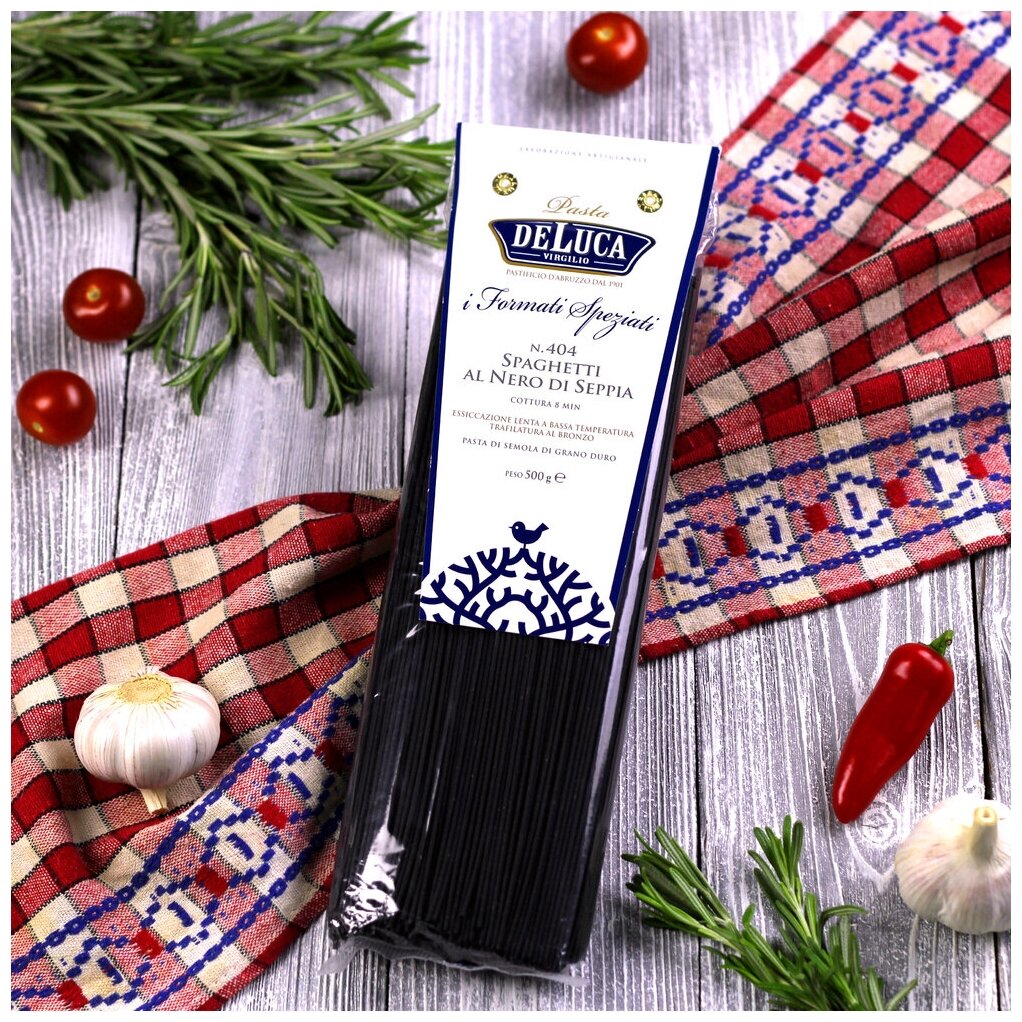 Сервис сравнения цен СкидкаГИД предлагает сравнить цены на товар «Макароны De Luca №404 Спагетти с чернилами каракатицы 500г De Lucа»