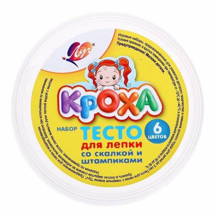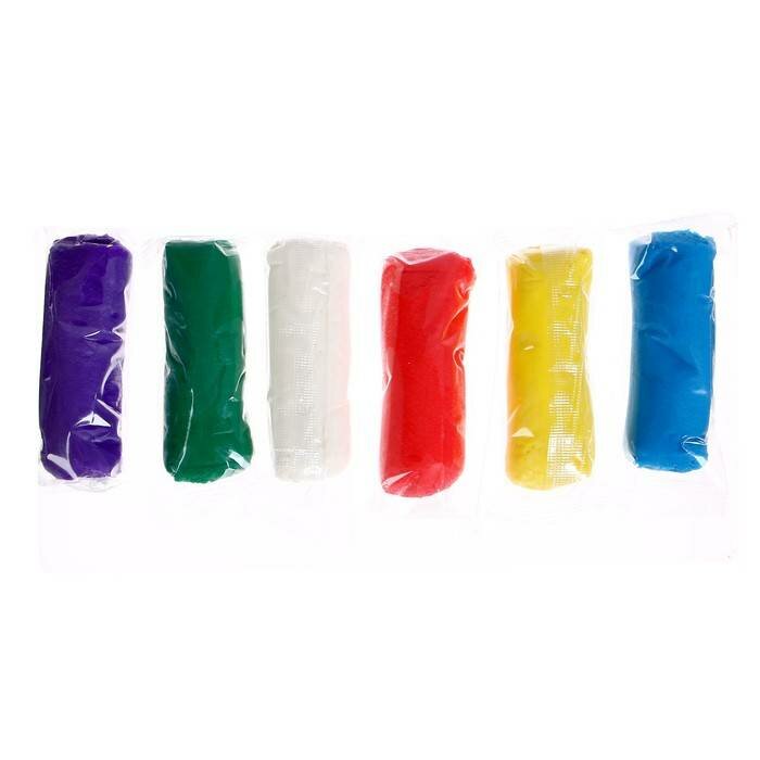 В наборе: тесто для лепки (6 цветов), скалка, штампики (3 шт)