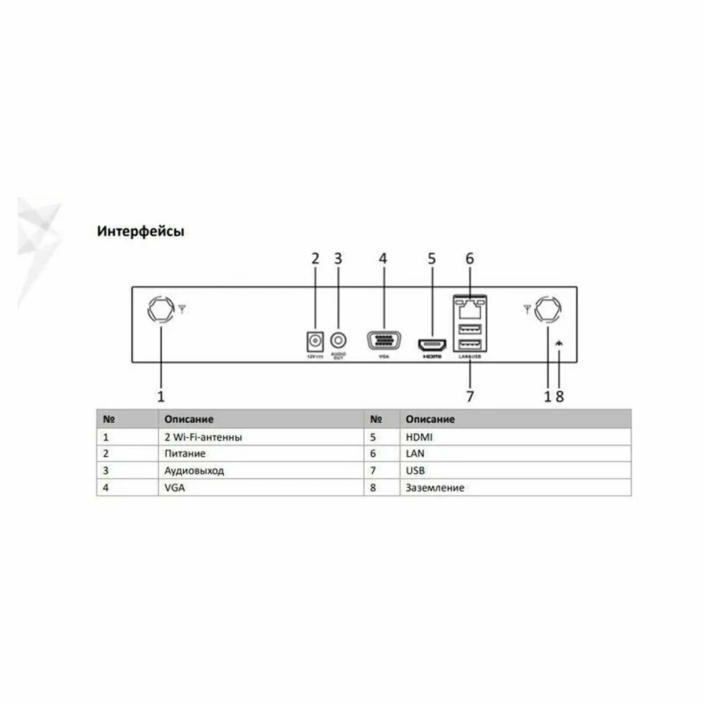- Воспроизведение видео с разрешением 4 канала, 4 Мп (12 к/с), 4 канала, 1080p (25 к/с)