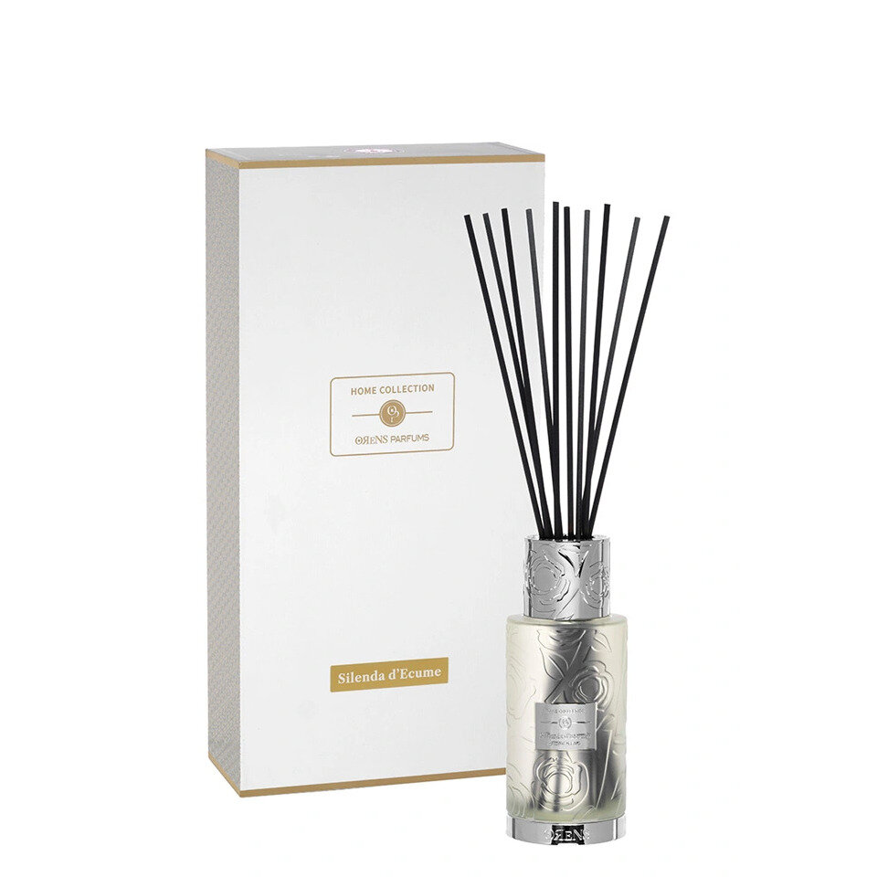 Диффузор Orens Silenda D Ecume - это средство для ароматизации помещений и создания особенного настроения дома или на работе. Качественный оригинальный продукт Оренс Силенда Декуме начал выпускаться в 2018 году. Относится к семейству ванильные, пудровые. Верхние ноты - ноты бергамота, персик, яблоко, ноты сердца - гелиотроп, корень ириса, ландыш, базовые ноты - ваниль, кедр, мускус. Парфюмы для дома бренда Orens обладают насыщенным запахом, прекрасными стойкостью и диффузностью! Объём ароматизатора для интерьера - 500 мл.