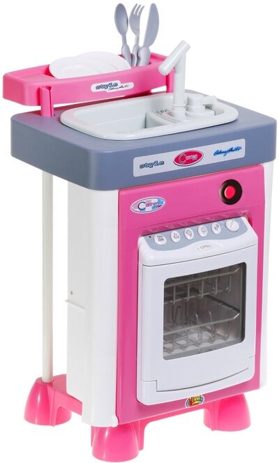 Реалистичность работы данного игрового элемента достигается за счёт звуковых эффектов и специального резервуара для воды, расположенного в дверке посудомоечной машины. После включения игрушки вода разбрызгивается между двумя прозрачными стенками дверки, и создаётся эффект реальной работы, а игрушечная посуда остаётся сухой. Мойка с краном оборудована встроенным насосом. Вода из раковины после включения насоса подаётся в кран и выливается обратно в раковину.