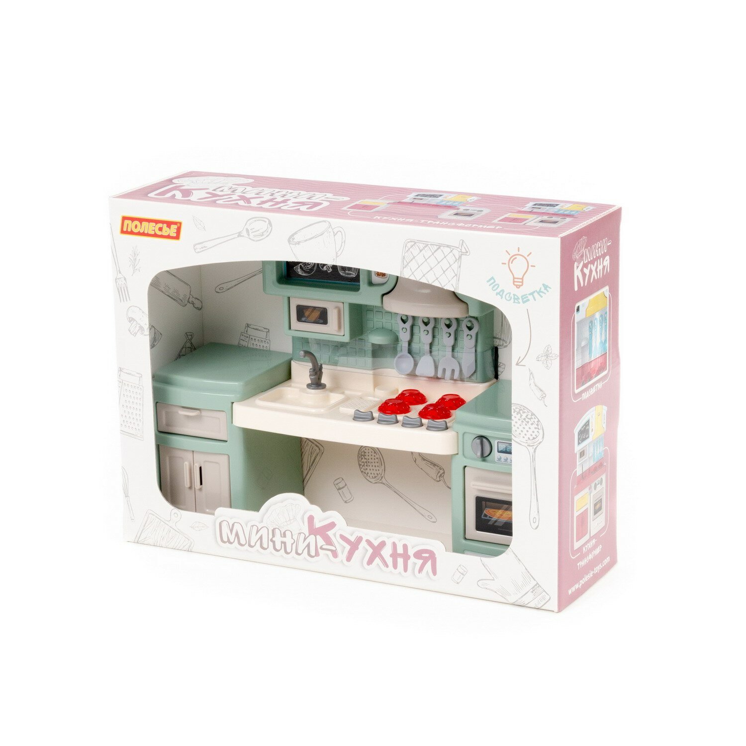 Игрушечная кухня Полесье "Laura" с варочной панелью представляет собой целый набор игрушечной бытовой техники. В центре находится плита с духовкой, справа от нее расположена раковина, в которую можно сразу положить грязную посуду. Слева стоит холодильник, а сверху расположена вытяжка, которая обычно выводит из помещения дым и запахи. Также в комплекте имеются посуда для готовки и столовые принадлежности.