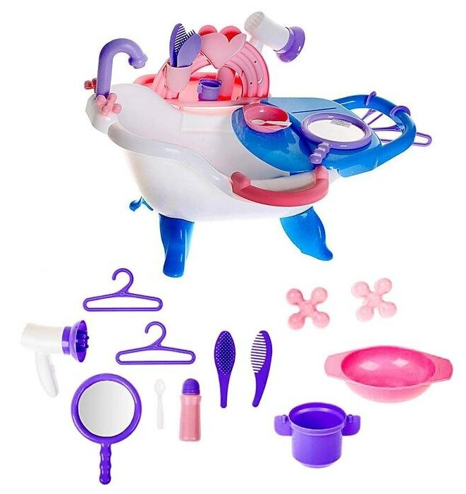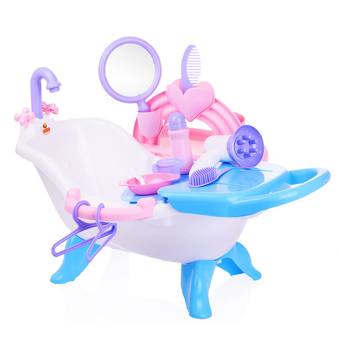 Такой набор для купания кукол обязательно понравится маленькой любительнице игры дочки-матери. Этот набор сделает игры еще интереснее, приучая ребенка к необходимости ежедневной гигиены. Такую игрушку можно взять с собой в ванну. Девочка сможет разыграть разнообразные сюжетные игры, игрушка способствует развитию воображения и социальной адаптации.