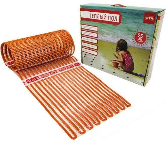 Нагревательные маты СТН – это теплый пол в рулонах. Используется лента из аморфных металлов в стекловолоконной сетке. Толщина мата не более 2,5 мм, а сами маты очень гибкие, что позволяет укладывать их без усилий. Могут устанавливаться с любам напольным покрытием и минимальной толщиной, допускается монтаж без стяжки. . Высокая энергоэффективность. КПД до 98 %. Отсутствие эффекта «тепловой зебры», благодаря тому, что площадь нагревательного элемента составляет 30-60% нагревательного мата. Мягкий подогрев – разница между температурой нагревательного элемента и поверхностью пола составляет всего 2-5 градуса. Повышенная безопасность, в следствии низкой рабочей температуры 35-40 градусов. Не боится перегрева. Теплый пол СТН можно устанавливать в деревянных домах и под тяжелой мебелью. Срок гарантии 25 лет. Мощность 190 Вт/м – применяются для обогрева загородного жилья и промышленных помещений. Комплектация: мат, теплый пол, инструкция по монтажу-гарантийный талон.