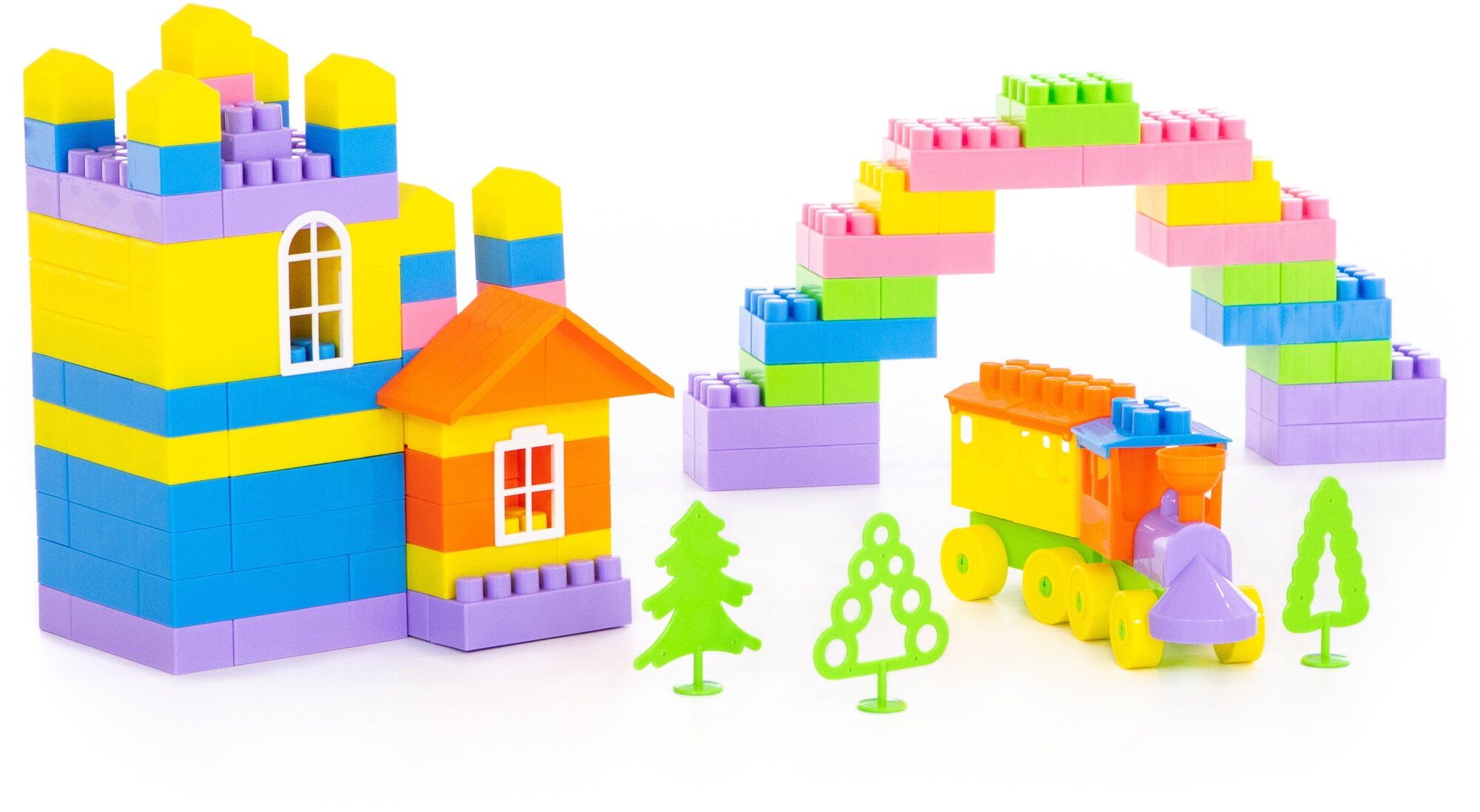 - Развивающий конструктор Строитель для детей типа Лего. Строим домик, играем паровозиком в боулниг