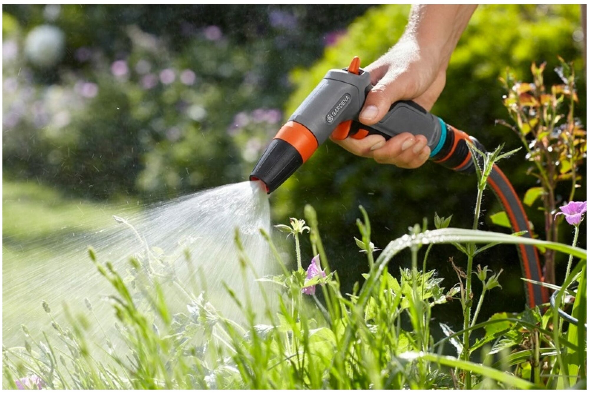 Регулируемый пистолет-наконечник GARDENA - идеальный инструмент для полива: благодаря предусмотренным элементам из мягкого пластика небольшой компактный инструмент удобно держать в руке. Возможна плавная регулировка напора воды. Сильная струя используется для очистки, а мелкодисперсное распыление предназначено для полива уязвимых растений. Для длительного непрерывного полива предусмотрен механизм фиксации курка, благодаря которому руки не испытывают усталости.