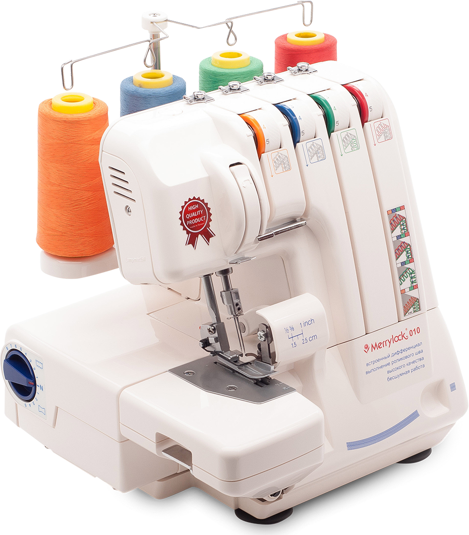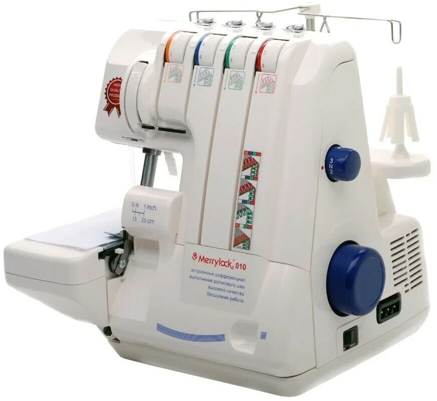 Merrylock 010 легко настроить для качественной работы. Этот оверлок выполняет профессиональную обработку края по оптимальной цене. Оверлок работает с любыми тканями. За обработку трикотажа отвечают настройка давления лапки и дифференциальная подача ткани. Данная модель выполняет трёх и четырёхниточные швы, в том числе ролевой шов. Простая заправка нитей, качественная сборка и удобный откидной столик заслужили одобрительные отзывы.
