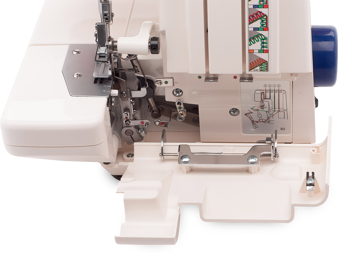 | Дополнительные функции и особенности | регулировка прижима ткани, дифференциальная подача, заправщик нижнего петлителя, регулировка ширины обреза ткани, отключение ножа |