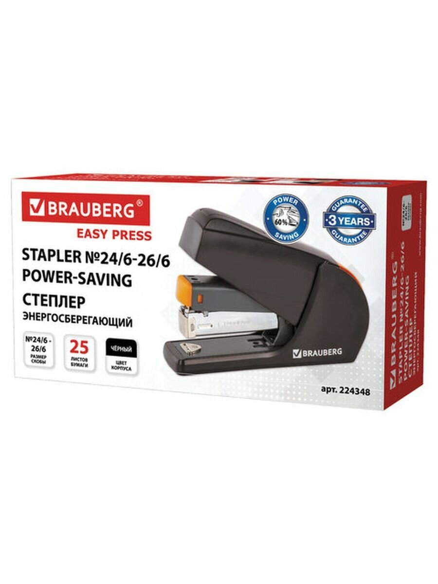 степлер Brauberg "Leistung" 24/6 26/6 БЕЗ УСИЛИЙ (сшивает до 25л!) глубина 55мм 224348