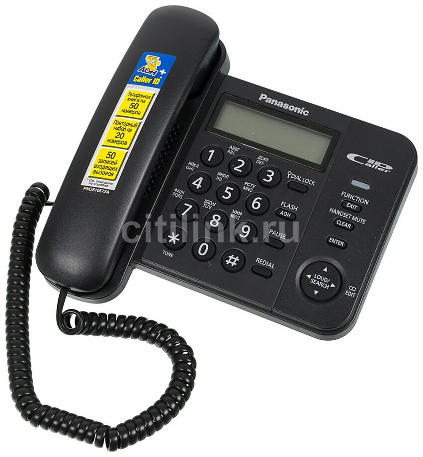 Компания Panasonic достаточно конкурентноспособный производитель телефонного оборудования. Модель проводного телефона Panasonic представлена в черном цвете, выполнена в очень стильном дизайне, прекрасно дополнит интерьер дома, рабочего кабинета или офиса. Имеется телефонная книга на 50 телефонных номеров, а также журнал вызовов, который может включать в себя 50 последних вызовов.