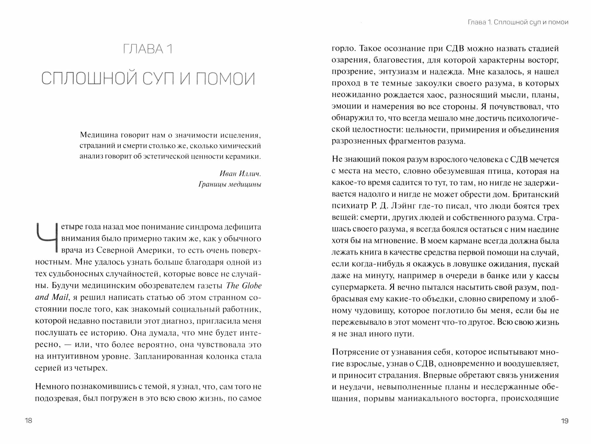 Габор Матэ разъясняет, как травма развития вызывает симптомы, которые объединяются под аббревиатурой СДВГ, и делает это с чувствительностью и большим пониманием. Сам переживший травму Холокоста, он черпает информацию из своего СДВГ, СДВГ своих детей и пациентов. Он рассказывает о том, как развивается синдром дефицита внимания, как он меняется или не меняется во взрослом возрасте, как вылечиться, и как мы можем приспособиться, чтобы предотвратить его появление. Завораживающе, убедительно, вдохновляюще. У меня нет синдрома дефицита внимания, но я разделяю достаточно проблем, связанных с ним, и эта книга мне очень помогла.