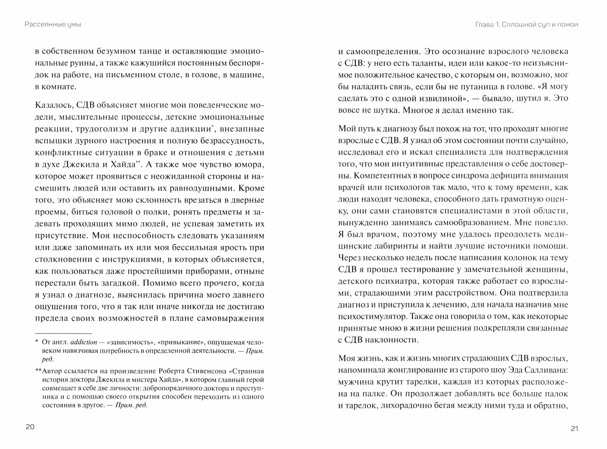 Наверное, прозвучит как в рекламе, но эта книга изменила мою жизнь) она не просто про СДВГ, она о том, как воспитывать своих детей и себя так, чтобы способствовать здоровому психическому благополучию. Ее должен прочитать каждый родитель, не только те, кто подозревает у себя или у ребенка СДВГ. Теперь я смотрю на воспитание детей совсем по-другому, жалко, что «Рассеянные умы» не были написаны раньше, когда мой старший был ребенком! Читается на одном дыхании, даже в ванную с собой брала… хотя для чтения в ванне больше подходит художественная литература :)