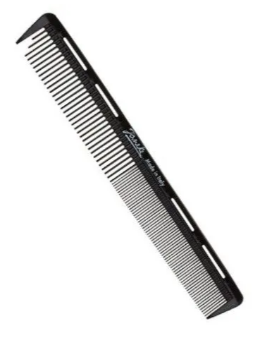 Расческа из профессиональной линии Janeke для стрижки волос. Эргономичный дизайн. Теплостойкая, надежная. Зубчики ручной работы.