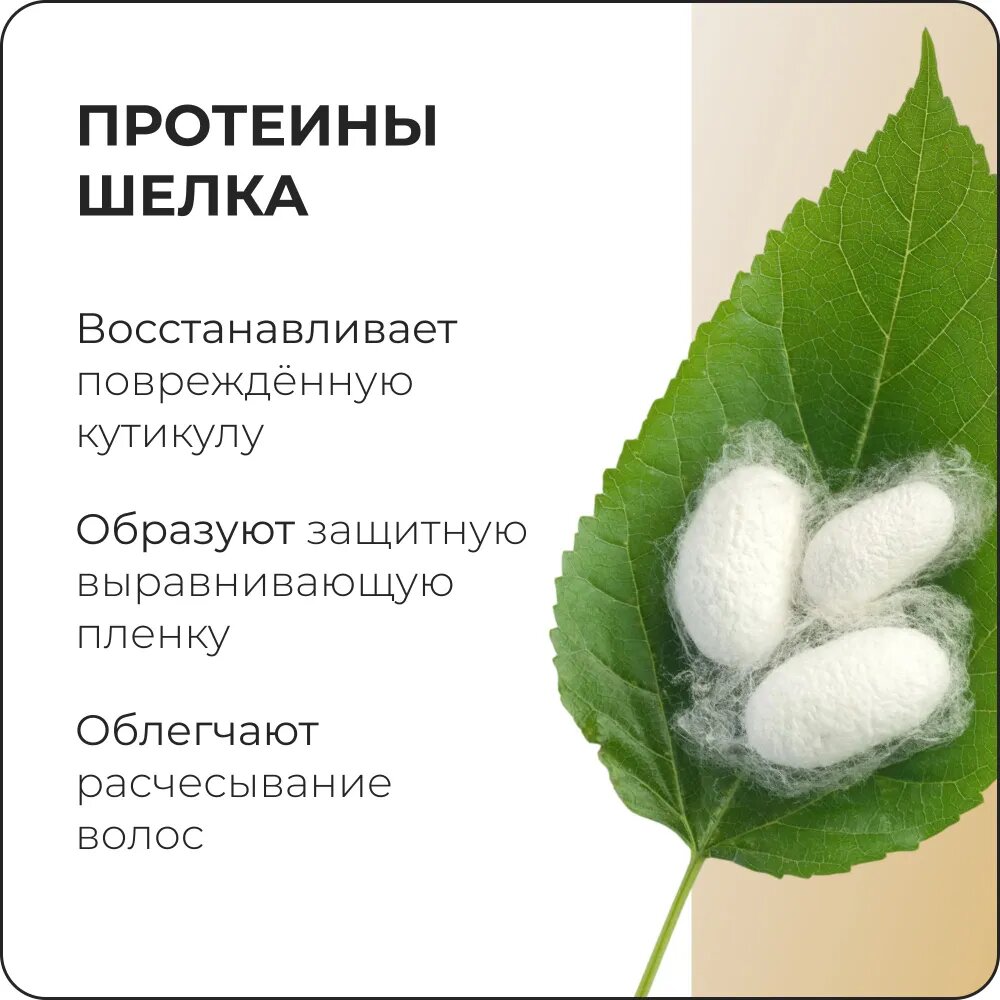 - аминокислоты шелка - обеспечивают процесс реструктуризации и укрепления стержня волос, предотвращая сечение кончиков волос