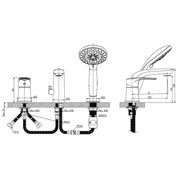 | Способ монтажа | на борт ванны |