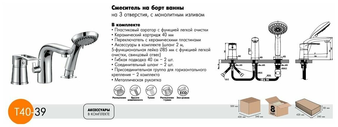 | Оснащение | Душевая лейка / Аэратор / Гибкая подводка / Душевой шланг / Крепления |