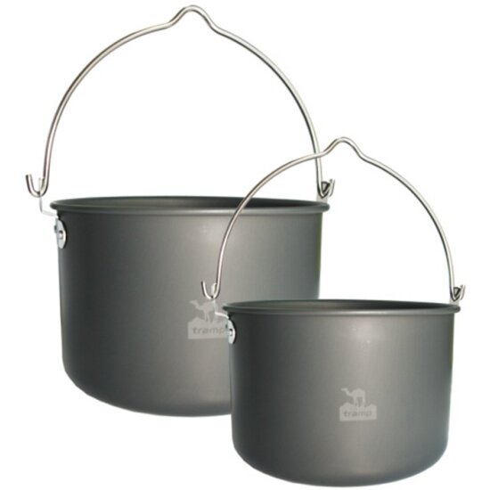 - Котелок имеют круглую ручку для подвешивания над костром.