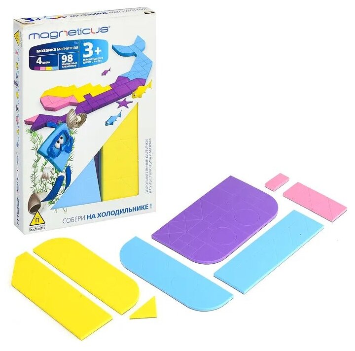 Мозайка магнитная Русалочка/Мягкая магнитная мозаика Русалочка - это набор, состоящий из геометрических фигур разных цветов и форм. Миди-мозаику можно собирать на любой металлической поверхности, поэтому ее удобно брать с собой в гости или короткие поездки. Она отлично сочетается с другими наборами Magneticus, имеющими металлическое игровое поле. Мозаика способствует развитию воображения, мелкой моторики, внимательности, а так же воспитывает в ребенке усидчивость.Состав набора: 98 мягких элементов из ЭВА 4 цветов с магнитным винилом (безопасный, эластичный, приятный на ощупь материал), 3 готовых этюда на коробке (Осьминожка, Рыбка, Русалочка).Материал: полимерный материал (EVA) с магнитным слоем.Товар соответствует требованиям безопасности продукции.Возраст: от 3-х лет./Развивающие, обучающие игрушки/Мозаики