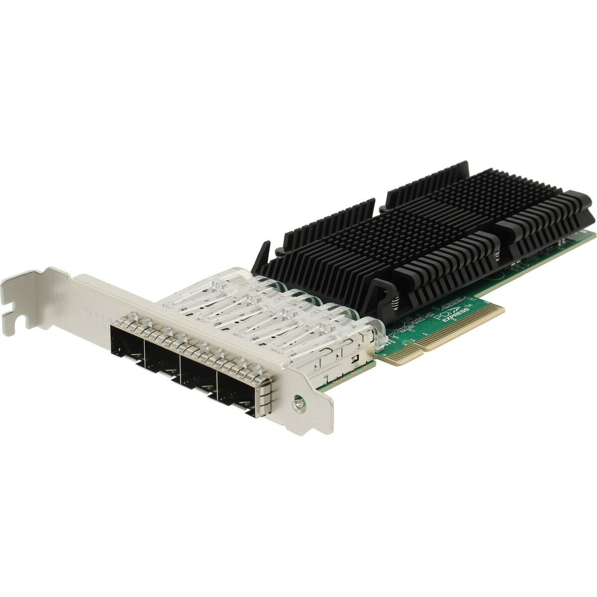 Это четырехпортовый адаптер Fibre Server SFP28 Ethernet PCIe x8 4.0 на базе чипсета Intel E810. Адаптер помогает оптимизировать производительность облачности и хранения, при высокой плотности 25G порт обеспечивает несколько соединений по запросу. Сетевой адаптер может удовлетворить требования центров обработки данных следующего поколения, предоставляя непревзойденные функции как для виртуализации серверов, так и для сетей, обеспечивая надежную производительность в гибких сетях LAN и SAN.