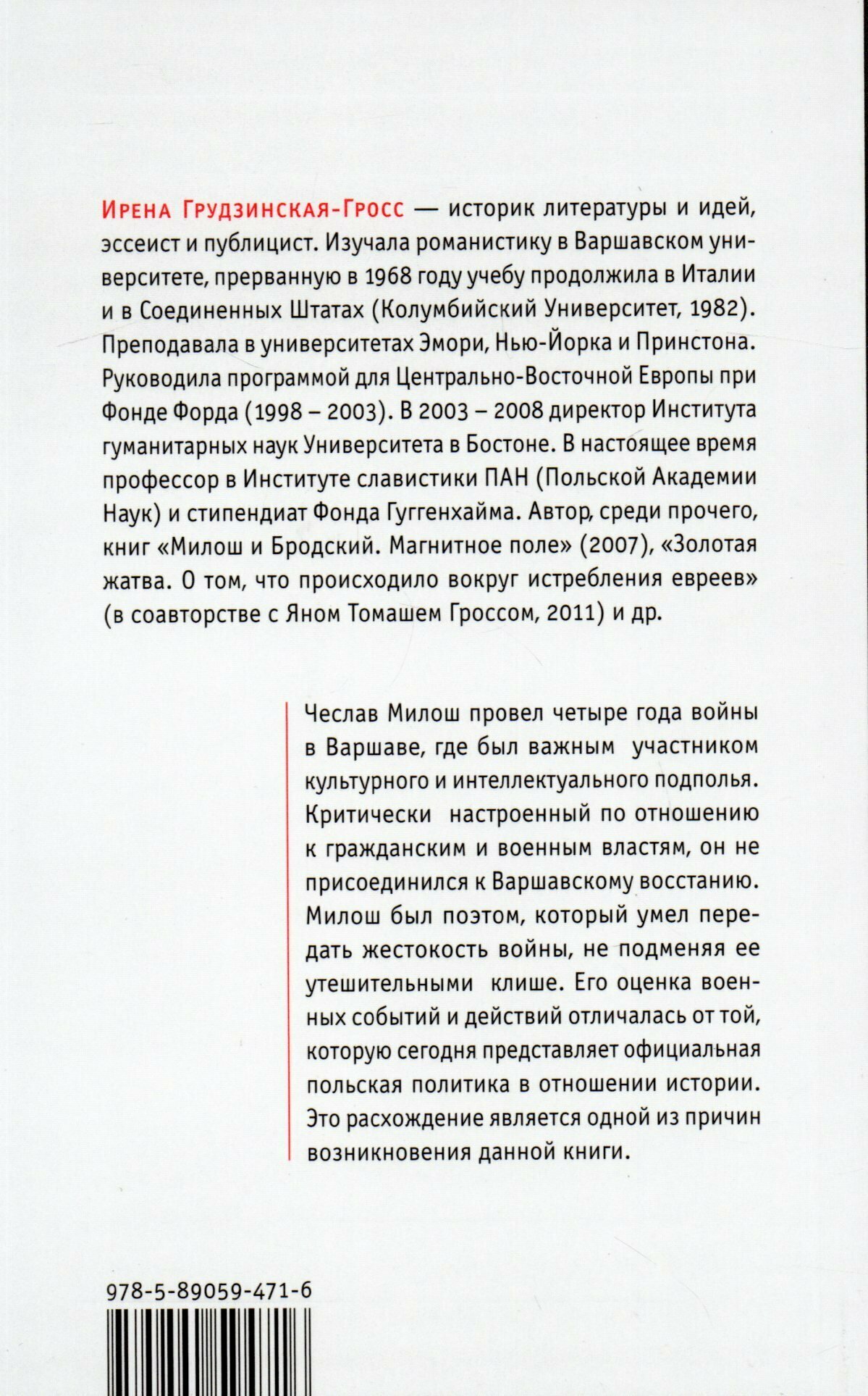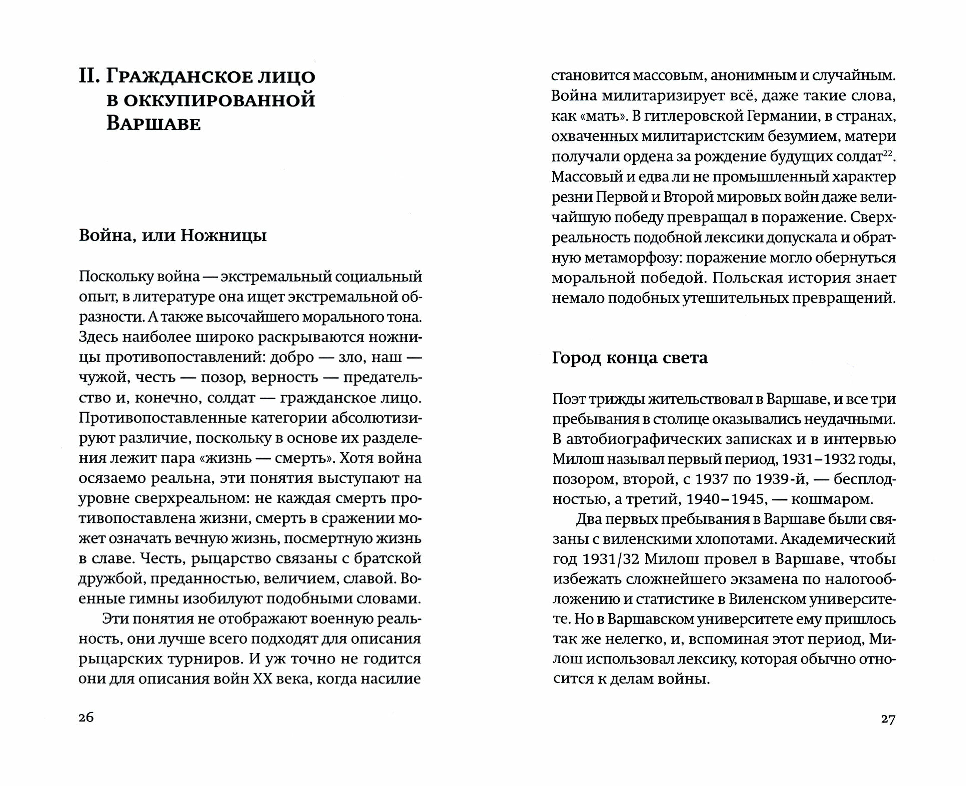 «Милош был поэтом, который умел передать жестокость войны, не подменяя ее утешительными клише. Его оценка военных событий и действий отличалась от той, которую сегодня представляет официальная польская политика в отношении истории. Это расхождение является одной из причин возникновения данной книги».