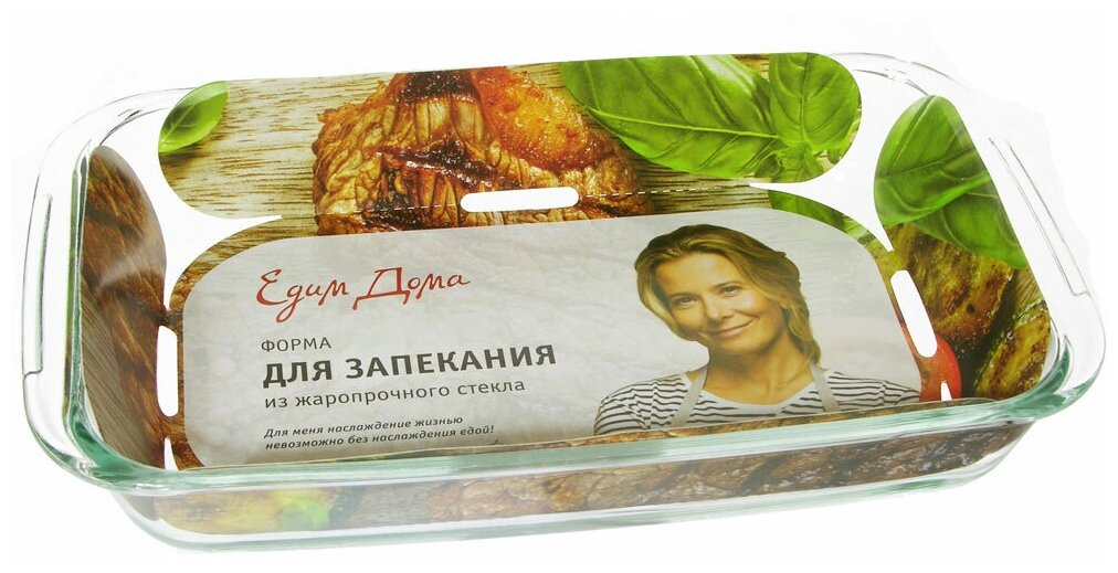 Форма TM Едим Дома изготовлена из жаропрочного стекла, которое выдерживает температуру до +400°С. Форма не вступает в реакцию с готовящейся пищей, не выделяет вредных веществ и не подвергается воздействию кислот и солей. Материал изделия гигиеничен прост в уходе и обладает высокой степенью прочности. Благодаря гладкой непористой поверхности форма не впитывает запахи, не меняет цвет, легко моется. Стойкое к образованию царапин. Форму TM Едим Дома по достоинству оценит даже не профессиональный повар, поскольку благодаря данному атрибуту вы сможете с удовольствием приготовить любимое блюдо в духовом шкафу, сохранив особый аромат и полезные свойства. Предназначена для приготовления, разогрева и хранения пищи, а также для подачи готовых блюд. Можно использовать в духовке, микроволновой печи, холодильнике и морозильной камере. Не подходит для открытого огня. Можно мыть в посудомоечной машине.важно: Изделия из жаропрочного стекла не терпят температурного шока. Холодную посуду нельзя ставить в разогретую духовку. Рекомендуется ставить стеклянную посуду в холодный шкаф. Нагревание и охлаждение изделия должно быть постепенным.