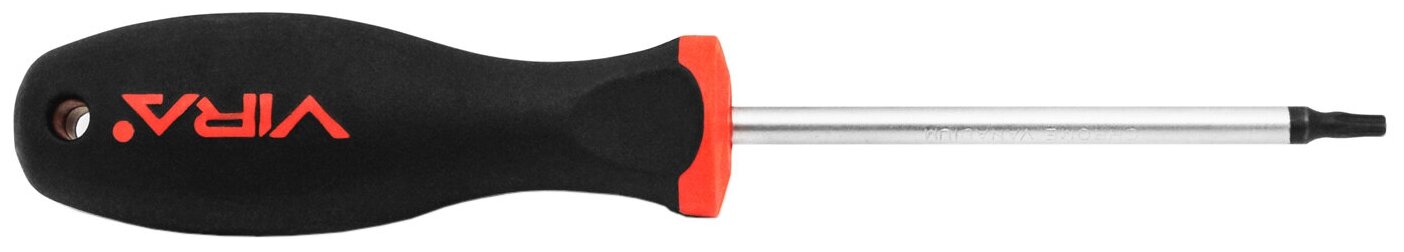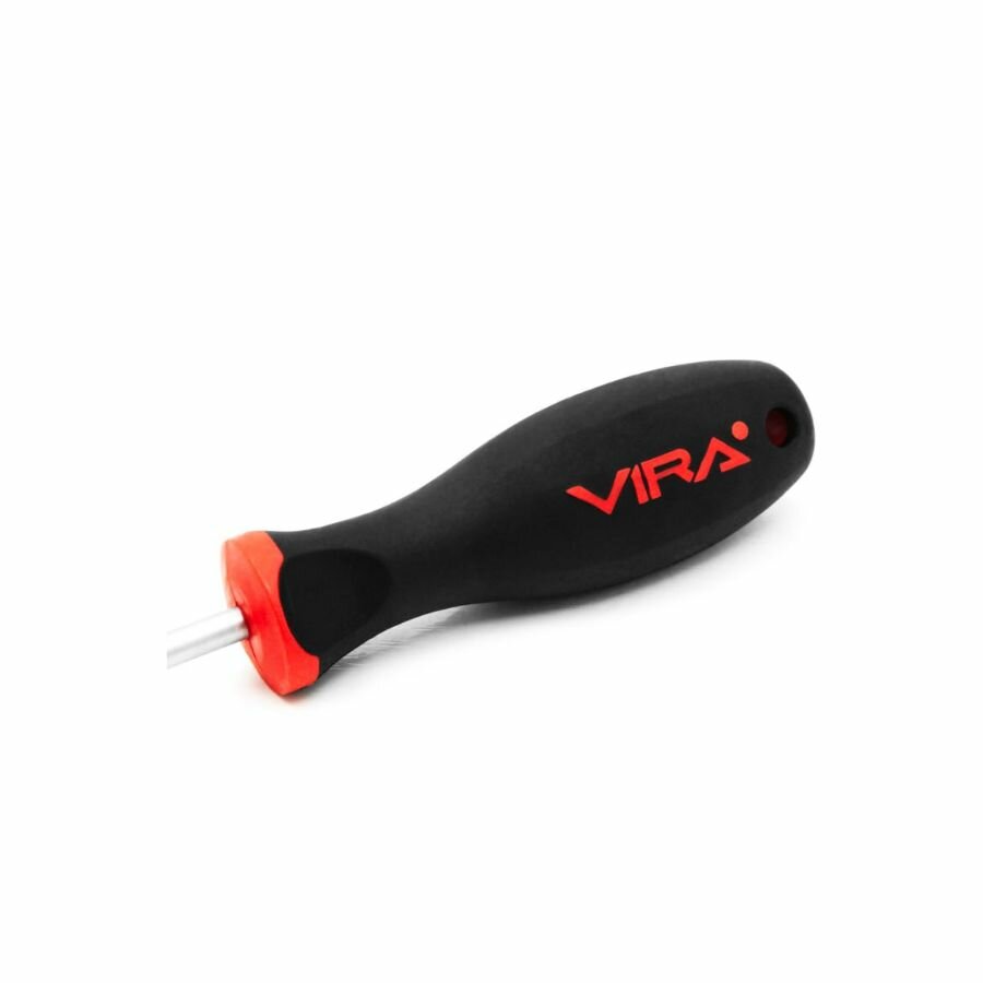 Отвертка VIRA Drive T15x100. Набор отверток Drive изготовлен из хром-ванадия. Твердость 48-52 HRC. Отвертка в два раза превосходит международный стандарт DIN по показателю предельного крутящего момента. Все отвертки серии имеют магнитный наконечник – мелкий крепеж, детали будет удобнее вворачивать или извлекать, сложнее потерять. Мы привели геометрию жала отвертки в соответствие с промышленным стандартом – оно без люфта помещается в шлице крепежа, благодаря точной обработке углов наконечника. Работая нашей отверткой, Вы не только сбережете шлиц шурупа, но и надолго сохраните сам инструмент, снизите усилия на вращение. Отверстие в рукоятке можно использовать для подвешивания отвертки на стенде, а можно вставить в него вороток для дополнительного усиления крутящего момента. Мы называем рукоятку отвертки VIRA анатомической, потому что она имеет сглаженную трехгранную форму, которая удобно обхватывается рукой, а большой палец естественным образом вкладывается в одно из углублений. Все перечисленные особенности ручки дают возможность создавать больший крутящий момент при меньших усилиях с вашей стороны. Рукоятки отверток выполнены из прочного пластика и упругой резины TPR. Такое сочетание материалов делает ручку крепкой, но мягкой для вашей ладони. Никаких царапающих швов и резких граней. Резиновое покрытие обладает антискользящим эффектом. Размер шлица: T15, длина стержня 100 мм.