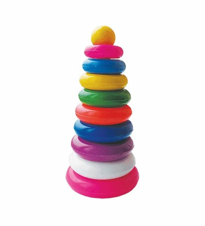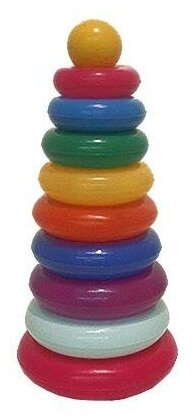 Пирамидка Пластмастер 9 колец. Первые знания о цветах и форме ребенок получит с помощью пирамидки 9 колец. Разные по диаметру яркие колечки познакомят малыша с размерами, научат нанизывать кольца на стержень, помогут в развитии мелкой моторики ребенка в раннем возрасте. Особенности: Игрушка выполнена из не токсичного пластика ярких цветов. Не имеет острых углов, поэтому исключается возможность травмирования. Колечки разные по размеру и расцветке, что учит воспринимать цвет и форму предметов.