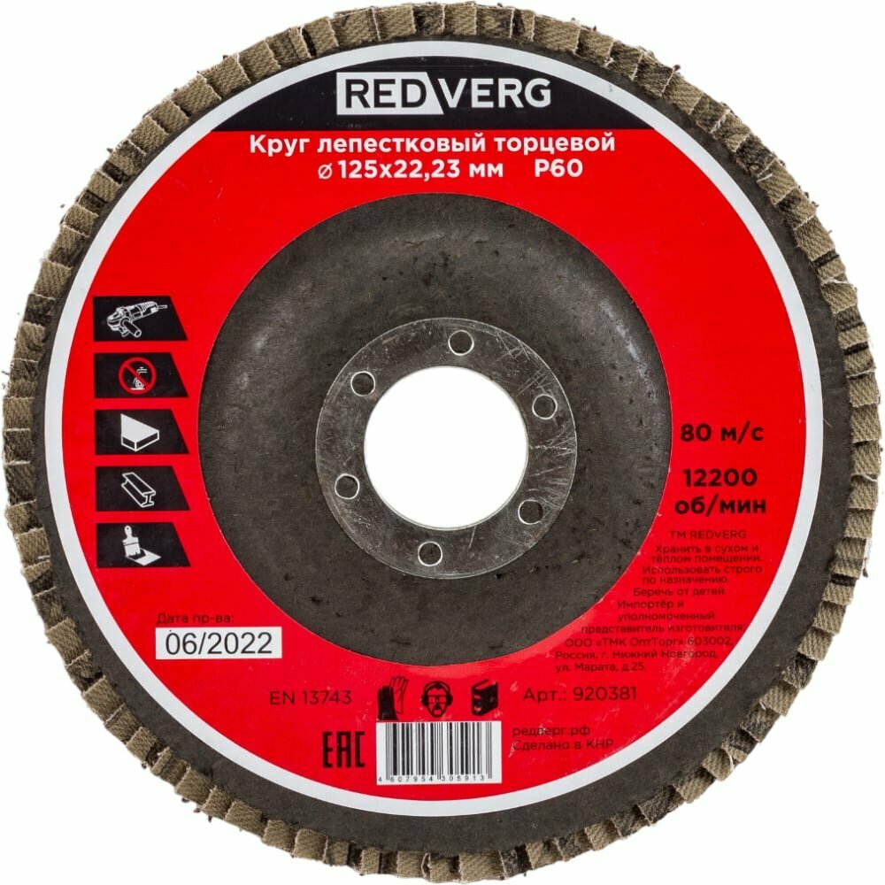 Круг лепестковый торцевой Redverg 125х22.2мм Р60 (920381)