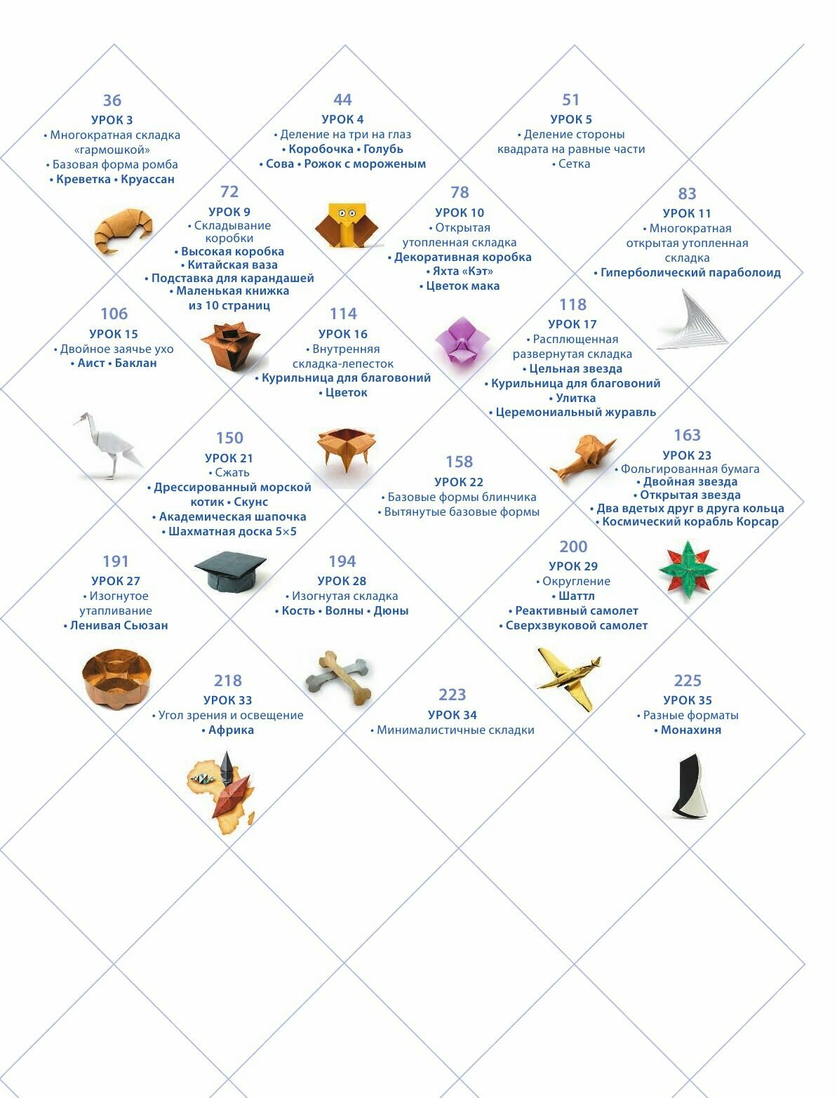- список необходимых материалов (как выбрать бумагу, как пользоваться схемами и как правильно делать складки);
