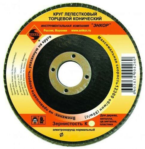 Лепестковый конический круг Энкор применяется вместе с углошлифовальными машинами. Круг используют для зачистки поверхностей металла от краски и ржавчины, а также для подготовки под покраску дерева и металла. Коническая форма круга обеспечивает максимальную площадь соприкосновения с обрабатываемой поверхностью. Легкая и надежная посадка на шпиндель, благодаря металлической втулке. Не допускает вибрацию.