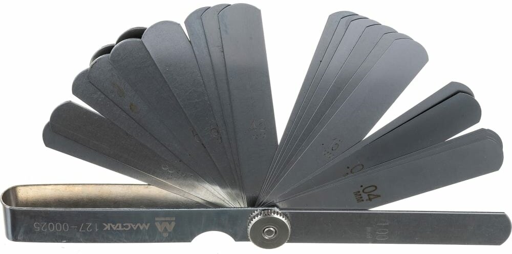 Набор щупов для проверки зазоров 0,04 -1,00 мм 25 шт мастак Предназначен для проверки величин зазоров между поверхностями.Широко используется в профессиональных автосервисах для обслуживания транспортных средств. Для удобства хранения и переноски инструмента предусмотрена возможность складывания. В комплекте представлено 25 щупов размерами 0,04 мм - 1 мм.
