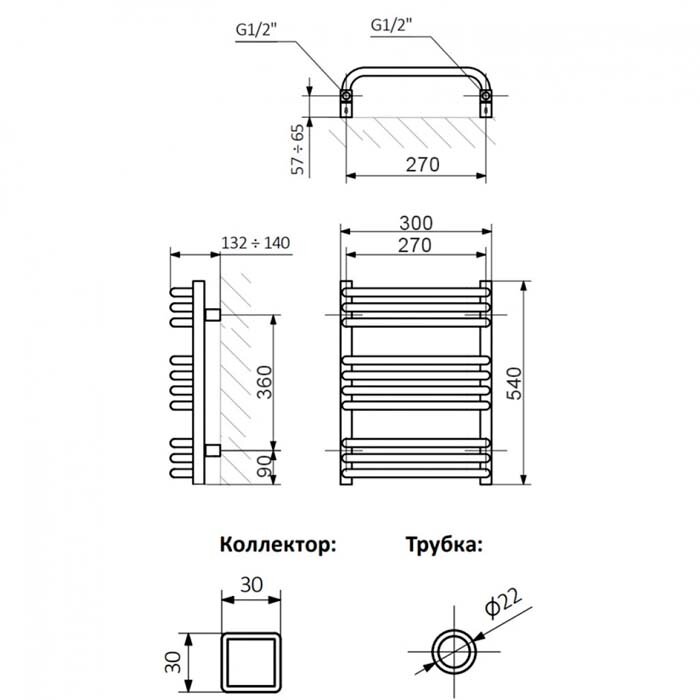 Электрический полотенцесушитель Terma Алекс 540/300 белый матовый