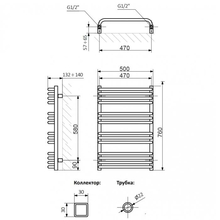 Электрический полотенцесушитель Terma Алекс 760/500 бел мат