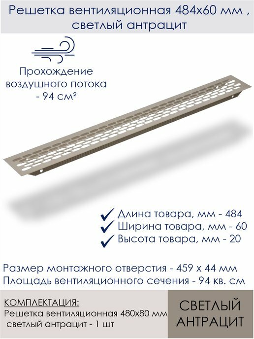 Площадь вентиляционного сечения - 94 кв. см