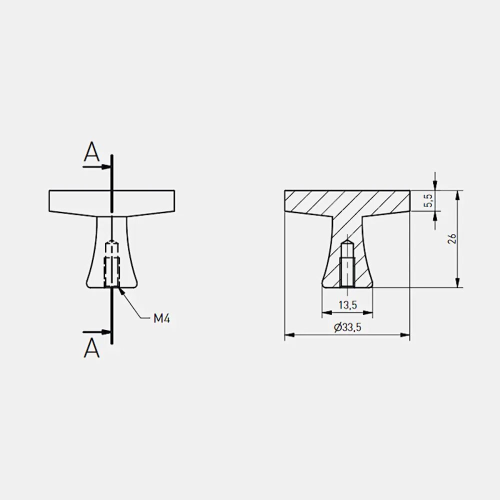 Ручка DUNE, позолоченная латунь - лицевая фурнитура в интерьерном стиле mid-century, ручка-кнопка в форме грибка с плоской шляпкой.