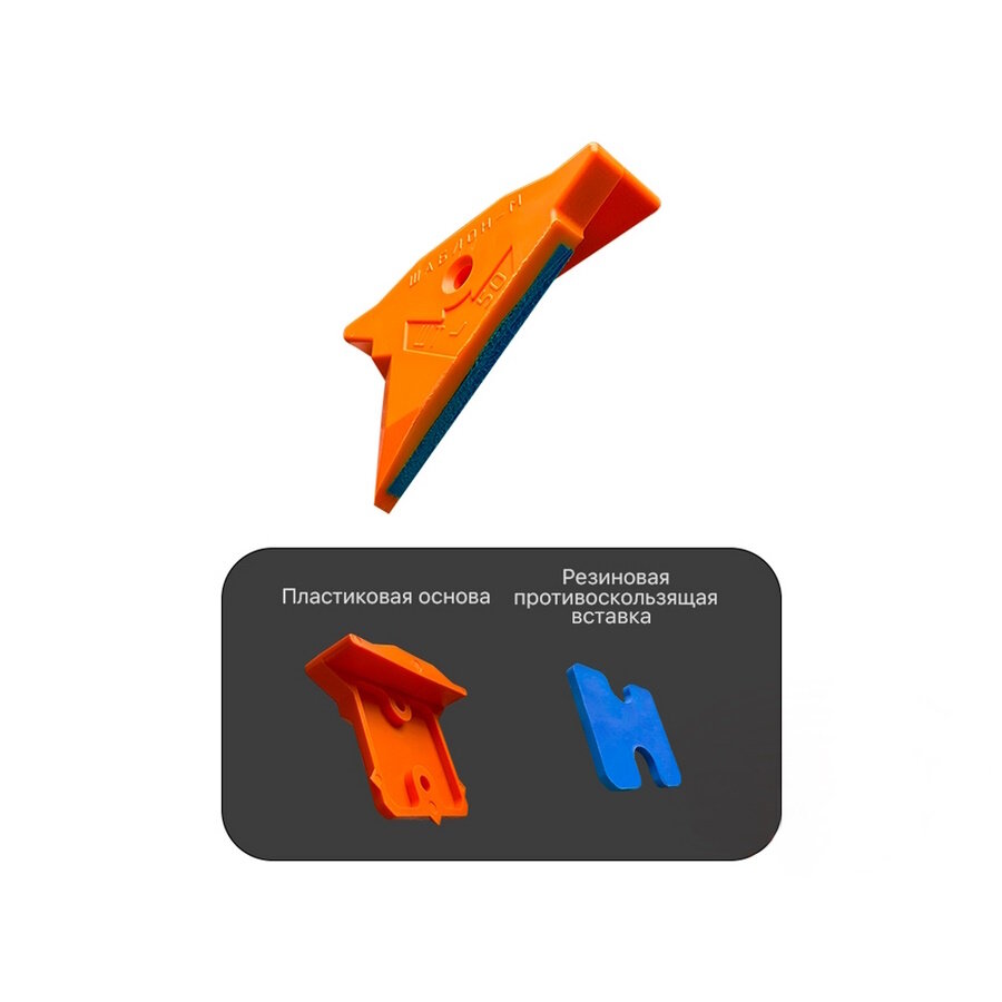 Мебельный Т-образный кондуктор ШТ-50(7) для сверления отверстий D5мм, D7мм - приспособление, используемое при изготовлении отверстий в деталях из ЛДСП толщиной 16 мм. Кондуктор накладывается на деталь и в требуемом месте сверлится отверстие определенного диаметра под конфирмат.