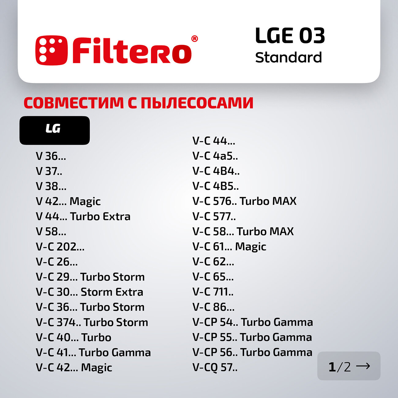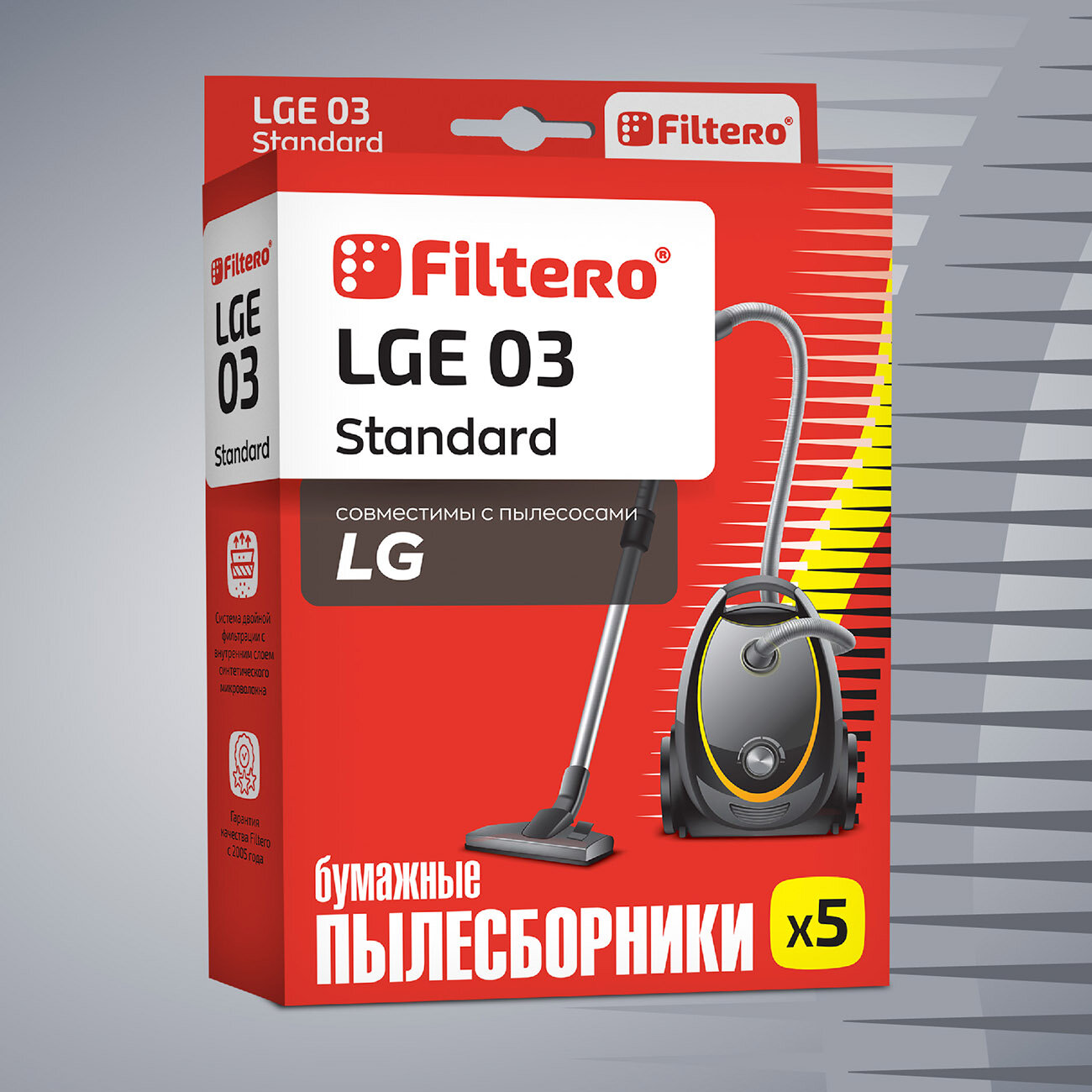 Пылесборники FILTERO LGE 03 Standard двухслойные 5 шт. для пылесосов LG LGE 03 (5) STANDARD