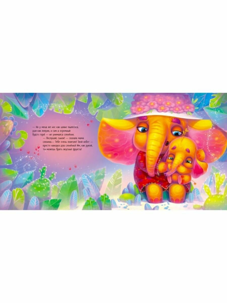 Я приобрела эту книгу потому что она очень красивая. Иллюстрации нереально красивые и яркие. Очень милая и добрая история про слонёнка и его маму. Дочка слушает с удовольствием и просит перечитать чуть ли не каждый день и сама сидит по долгу рассматривает рисунки. Качество страниц порадовало. Читать такую книгу одно удовольствие. Хотелось бы собрать все книги из этой серии книг.