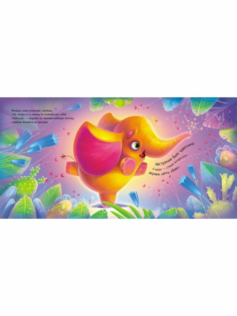 Это история о слонёнке, который впервые отправился гулять без мамы. Он был рад и чувствовал себя очень взрослым. Но звери, которых он встречал, насмехались над маленьким слонёнком, ведь у него такой длинный нос, большие уши и очень уж он огромный. Слонёнок так расстроился... Хорошо, что мама знает, как показать малышу, что быть слоном — очень здорово!