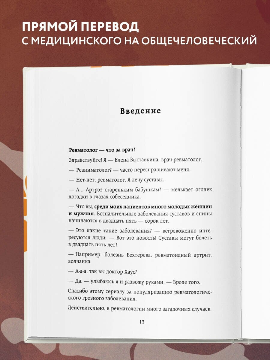 Подписана на Елену Выставкину в запрещённой сети давно - с тех пор, как "прострелило" спину и я, надеясь, что всё пройдёт само 2 дня лежала и рыдала от боли, на четвереньках сползая с кровати в случае крайней необходимости. Когда сдали нервы, подруга посоветовала Елену и мы к ней съездили. Мне кажется уже через полчаса приёма спина стала меньше болеть, в крайнем случае доброжелательность, внимательность и профессионализм Доктора создали ощущение уверенности и оптимизма. Сейчас, спустя несколько лет, о том случае со спиной практически не вспоминаю, но пропустить выход книги этого прекрасного доктора я никак не могла, хотя вроде мне ничего не нужно по ревматологической части, тьфу-тьфу)