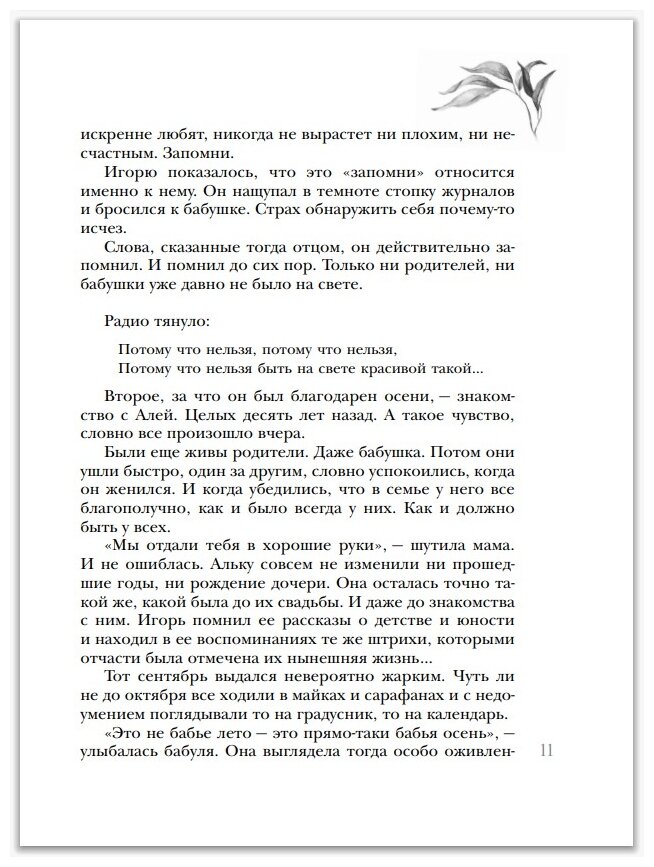 Шикарный роман, хотя вроде и нет в нем ничего особенного,а какая-то теплота исходит от повествования. В нем раскрывается очень много простых истин, о которых мы так часто забываем в суете. Это произведение, которое запало в душу, не смогла сдержать слёз. В книге сделан правильный вывод - все можно пережить,главное, чтобы было кого любить, кому верить, жить ради кого-то и надеяться.