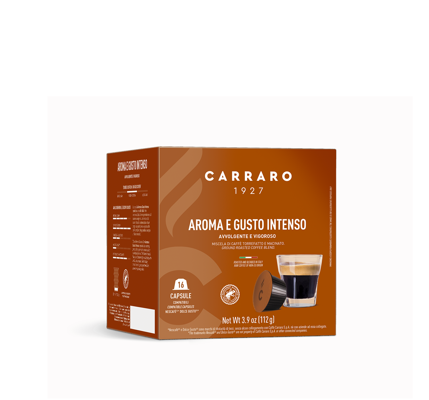 Насыщенный кофе, бодрящий вкус с нотками натурального какао и лесного ореха. Устойчивое и долгоиграющее ореховое послевкусие. Низкая кислотность и насыщенное тело. Идеален для приготовления американо, капучино и латте. Благодаря капсульной системе, приготовление кофе становится максимально простым, быстрым и удобным. Традиции и опыт итальянской компании Caffe' Carraro s.p.a. гарантируют качество и стабильность каждой чашки кофе.