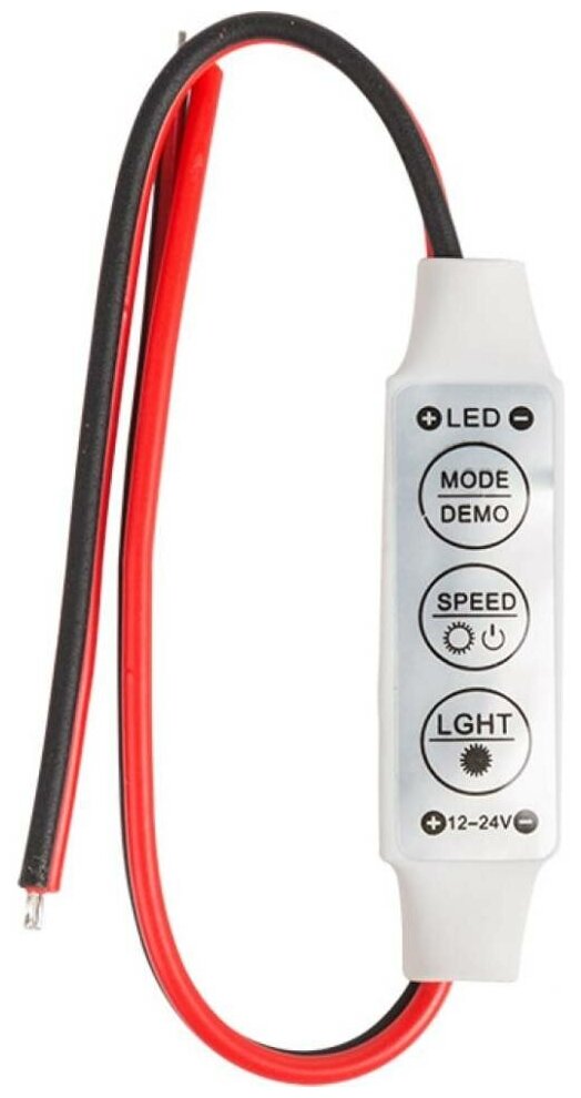 Мини-радиодиммер Lamper предназначен для программного управления режимами работы одноцветных LED источников света с напряжением 12/24 В. Позволяет регулировать яркость свечения одноцветных светодиодных лент (от 10 до 100 процентов), менять режимы и скорость их воспроизведения. Изготовлен из высококачественного пластика белого цвета. Управление осуществляется с помощью 3-х кнопок на корпусе. Компактные размеры позволяют создавать скрытую подсветку: прятать устройство в узких нишах, в щитке, за подвесными и натяжными потолками. Напряжение питания: DC 12/24 В. Для питания от сети 220 В необходим блок питания (адаптер), который приобретается отдельно. Максимальный выходной ток: 6 А, максимальная выходная мощность – 144 Вт. Степень защиты: IP23, температурный режим от -20 до + 60 (использование на улице только под навесом). В комплекте поставляется подробная инструкция на русском языке. Диммер Lamper гарантирует высокое качество работы даже при длительной и интенсивной эксплуатации.